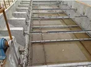 链板式刮泥机-金属传动是通过金属链条传动牵引链条上刮板移动,将沉于底部的泥砂刮集到集泥斗(槽)、浮渣刮集到除渣斗的机械设备。