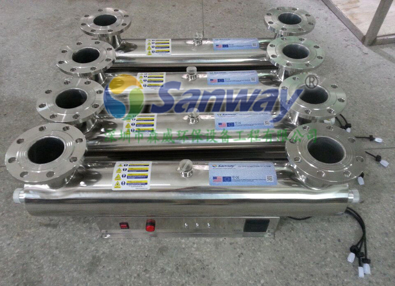 当原水进行混凝、沉淀、过滤处理之后,通过管道流入清水池,必须进行消毒,消毒的方法是在水中投入氯气、漂白粉或其它消毒剂,用以杀灭水中的致病微生物。也有采用臭氧或紫外线照射等方法对水进行消毒的。
