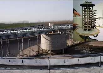 周边传动刮(吸)泥机碳刷集电环指周边传动刮(吸)泥机采用的碳刷集电环。采用碳刷集电环的周边传动刮(吸)泥机主要应用于各种辐流式沉淀池。当电机运转时集电环会随电机一起旋转,碳刷就紧贴集电环的表面摩擦,但集电环表面光滑,材质相对硬,造成碳刷容易磨损及腐蚀(磨完就需更换),导致供电中断,运行不稳定,并存在用电安全隐患,目前已被电子式集电环替代。